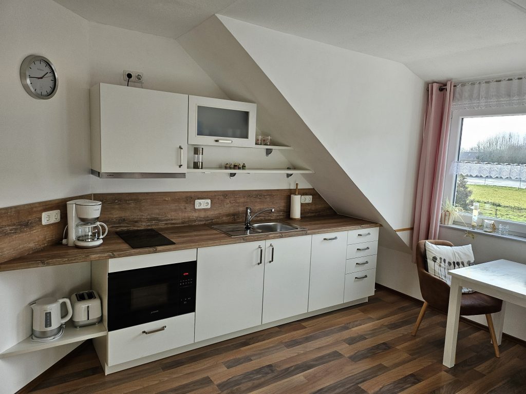 Die Wohnung bietet eine vollständig ausgestattete Küche und gemütliche Wohnräume.